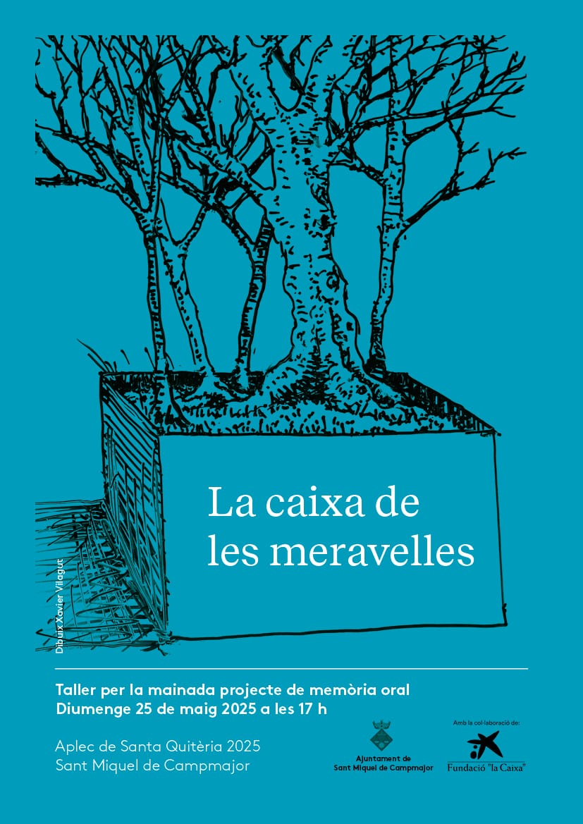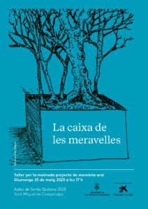 Agenda Taller per a la mainada Projecte de memòria oral La caixa de les meravelles 25/05/2025 a les 5 de la tarda | Als paratges de Santa Quitèria < Entrada AnteriorEntrada Posterior >